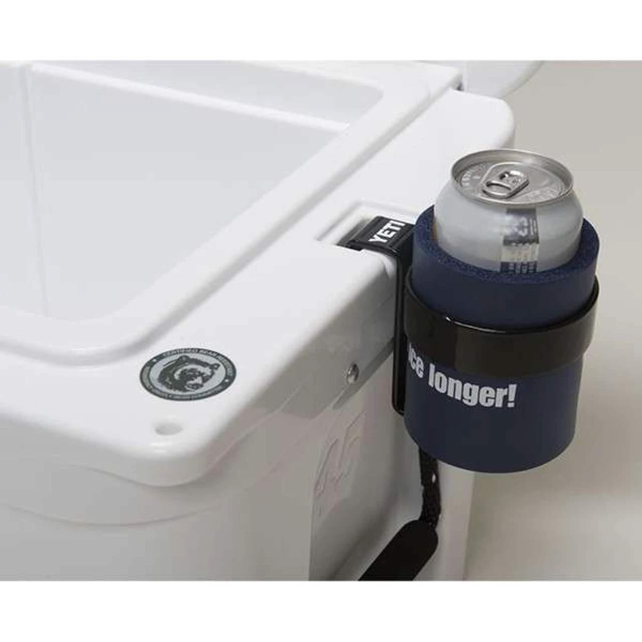 The YETI Beverage Holder is designed to mount to the side of your YETI cooler and holds your drink securely and conveniently. This holder is heavy duty, stainless steel, and slides securely into the AnchorPoint Tie-down slot of your YETI cooler.